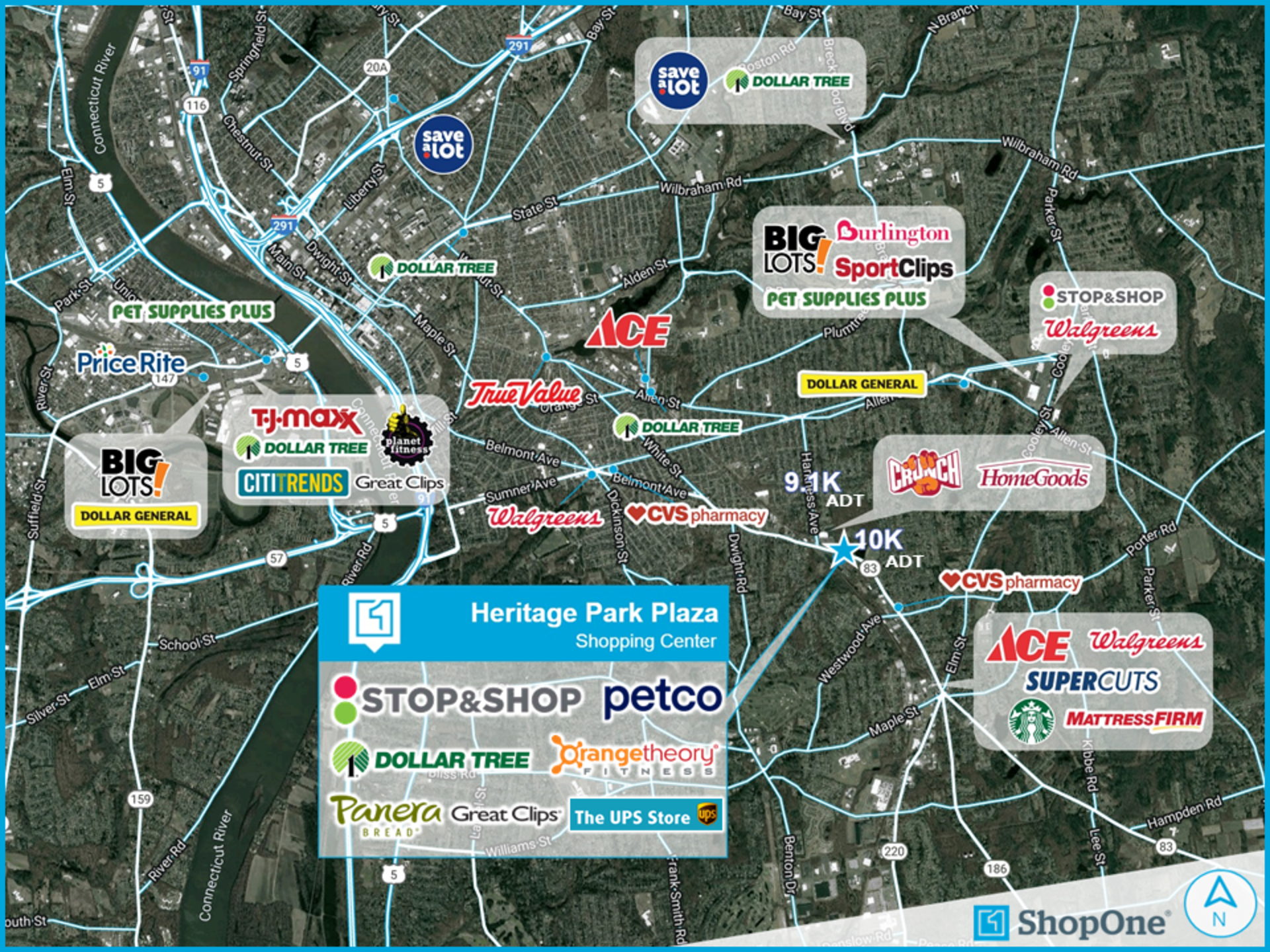 Heritage Park Plaza is a 117,337 SF neighborhood shopping center anchored by Stop & Shop just outside Springfield, MA. Stop & Shop has operated at this location since 1995 and is the #1 grocer by market share in New England. The center’s strong commercial location along N Main Street, has attracted many national and regional brands, including Petco, Dollar Tree, Panera Bread, and 99 Restaurant.
