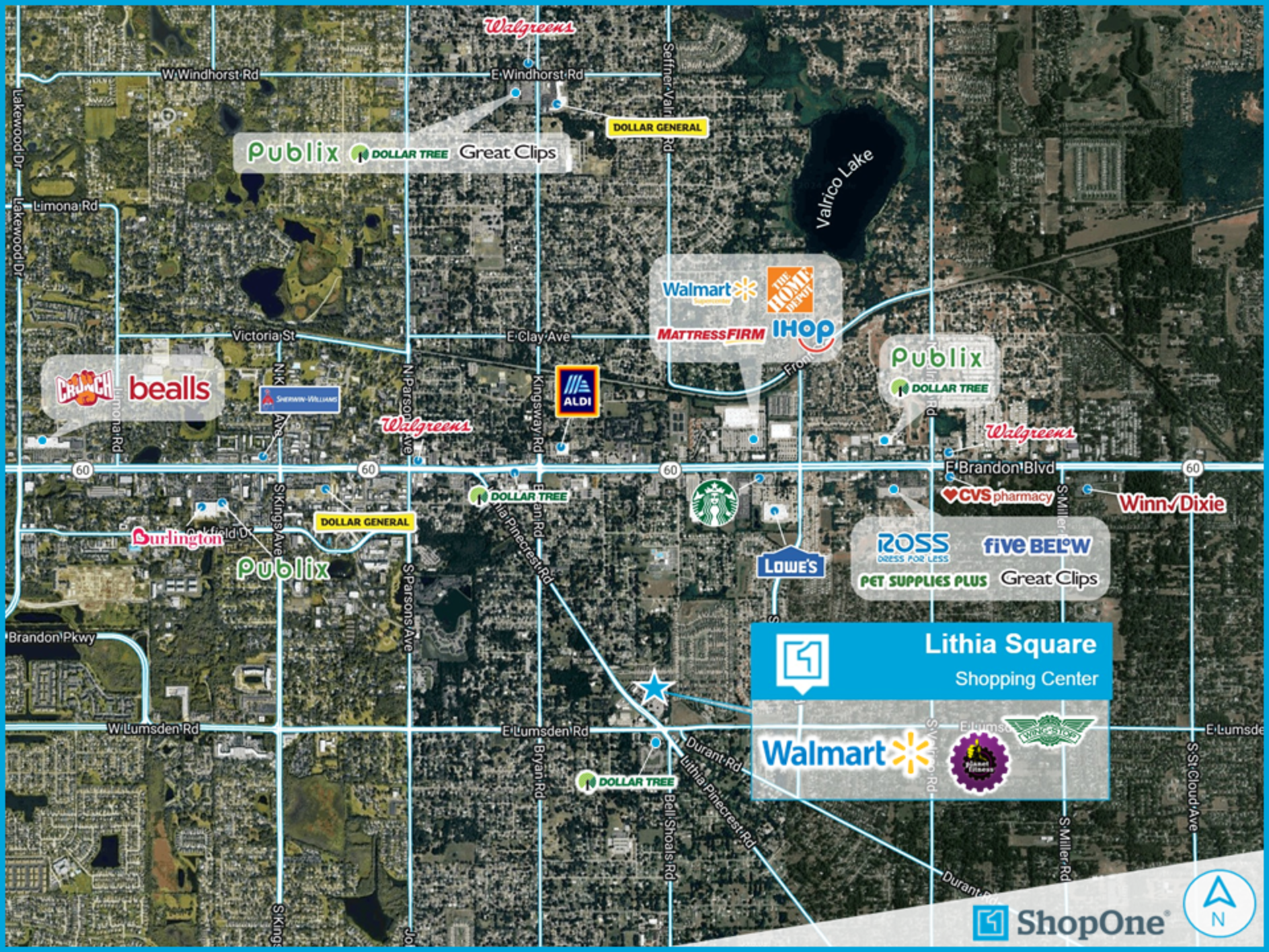 Lithia Square is a 70,607 SF neighborhood shopping center prominently anchored by Walmart Neighborhood Market. Surrounded by a 3-mile radius with a population of 101,000 residents, Brandon, FL is a growing affluent community that offers convenient access to downtown Tampa. Walmart Neighborhood Market recently underwent extensive renovations, and planned capital improvements are set to revitalize Lithia Square, attracting new tenants and increasing consumer traffic to this neighborhood-oriented location.