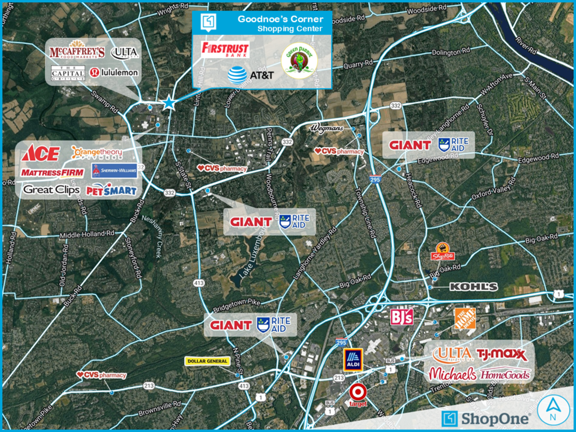 Goodnoe's Corner is a 34,589 SF town center located in Newtown, PA. This center sits in one of Pennsylvania's top 20 wealthiest zip codes and is positioned right in the heart of Newtown. The center has a good tenant-mix of long-term and newer retailers and is surrounded by several national retailers in the immediate area.
