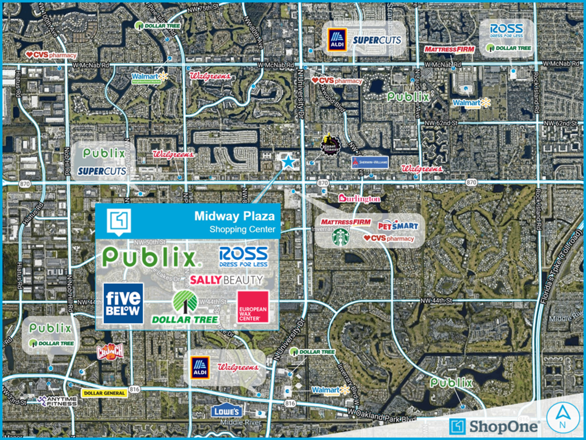 Midway Plaza is a 218,407 square foot community shopping center situated in an infill trade area in western Broward County, Tamarac, FL. Anchored by Publix, since the center’s development in 1986, Midway Plaza is positioned at the “main and main” intersection of University Drive and Commercial Boulevard. The asset is located in a densely populated trade area with 195,000 people living within a 3-mile radius of the property. In addition to Publix, Midway Plaza benefits from a diverse junior anchor tenancy lineup highlighted by Ross Dress for Less, Dollar Tree, and Five Below.