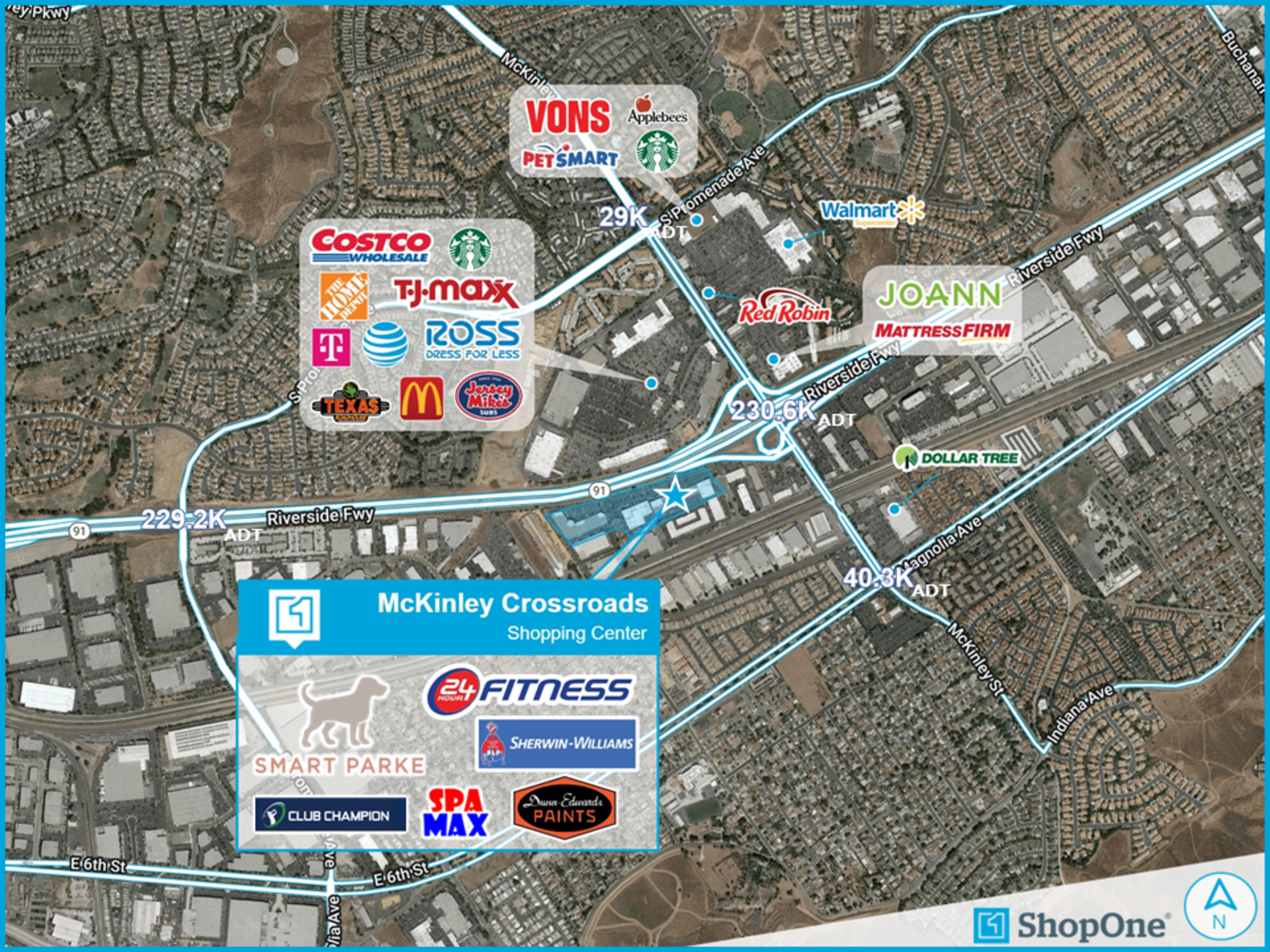 The property consists of three buildings situated on a 13.89-acre site located at the intersection of Teller Street and Dupont Street. The plaza is made up of a mixture of local and national tenants and is anchored by 24 Hour Fitness Center. Other notable tenants at the property include Club Champion, Alexander Arman Salon & Spa, and Sherwin Williams.